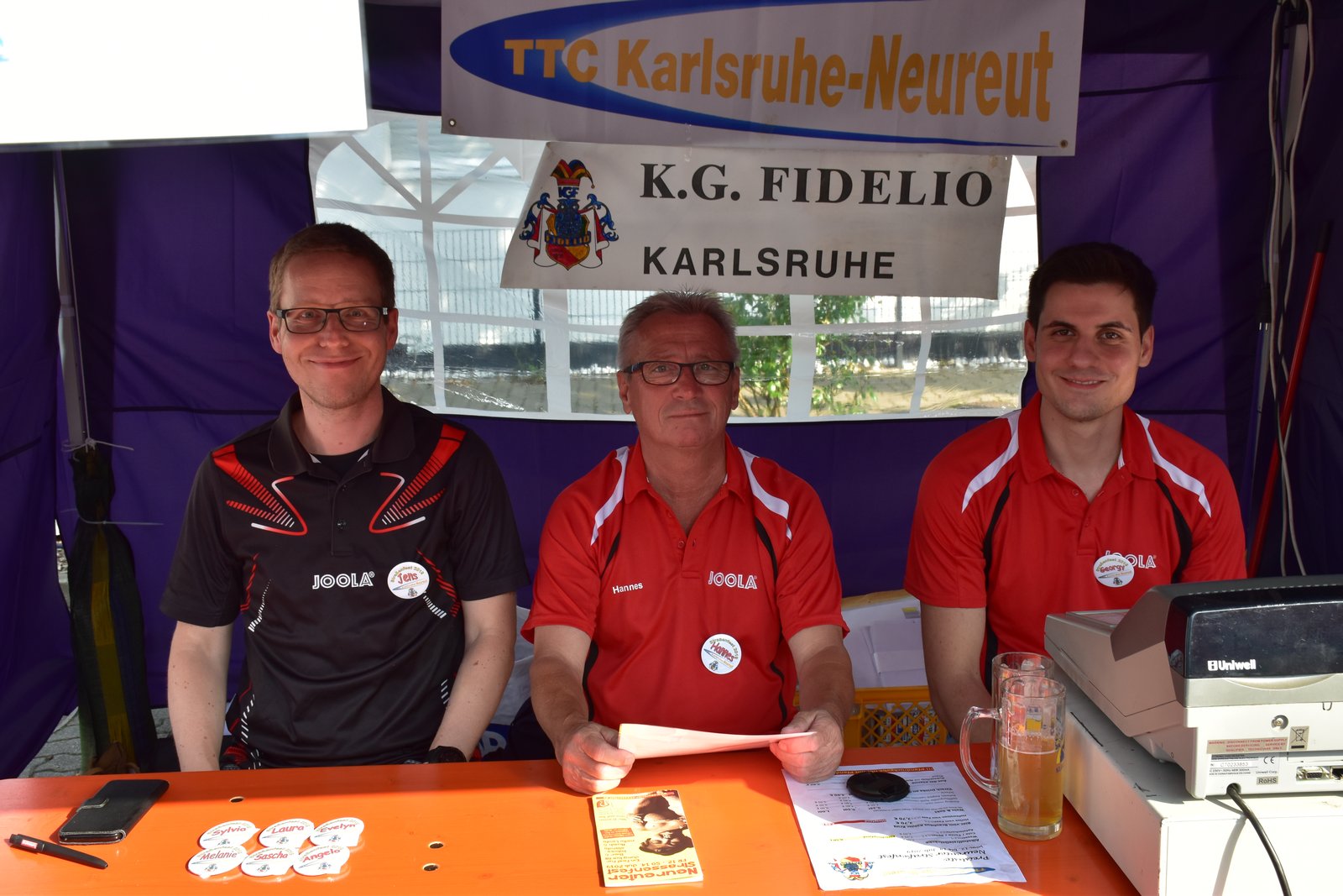 Trotz widriger Wetterbedingungen sind wir mit unserem Einsatz beim Straßenfest zufrieden. Zwar begann es am Freitag recht schleppend, aber am Abend waren unsere Stände doch recht gut besucht. Am Samstag hatten unsere Helfer alle Hände voll zu tun, um den gewaltigen Ansturm zu bewältigen. Leider macht uns der um 1/2 11 Uhr einsetzende starke Regen einen Rekordumsatz zunichte. der Sonntag begann recht frustrierend. Der von 9 Uhr einsetzende Dauerregen lockte logischerweise keine Besucher aufs Fest. Der trockene Nachmittag bescherte uns dann aber doch noch viele Besucher. Es freut uns, dass unsere Brat- und Currywürste mehrfach als sehr gut gelobt wurden. Hervorragend war auch die Zusammenarbeit am Sonntagabend. Innerhalb von 1,5 Stunden hatten wir unsere Stände kpl. abgebaut. Vielen Dank an alle die unsere Stände besucht haben und so unseren Verein unterstützt haben. Vielen Dank auch an die vielen Helfer, ohne die wir das nicht geschafft hätten, und natürlich einen ganz herzlichen Dank an unsere Freunde vom Karnevalsclub Fidelio für die hervorragende Zusammenarbeit.